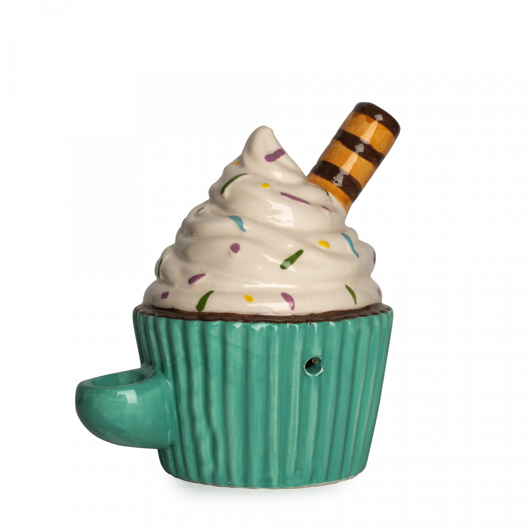 Satisfy your sweet tooth with the Ceramic Cupcake Hand Pipe. Inhale using the chocolate wafer mouthpiece and enjoy everything that icing and rainbow sprinkles have to offer! Be warned... you may start excessively craving cupcakes after using this pipe.