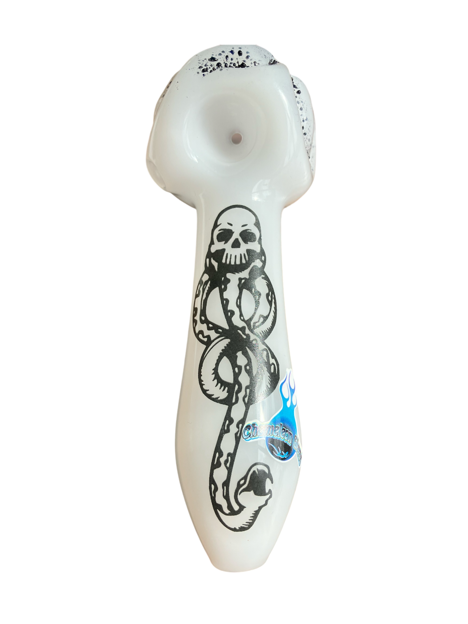 Chameleon Glass Skull Snake Decal Pipe , approximately 5” and made in the USA