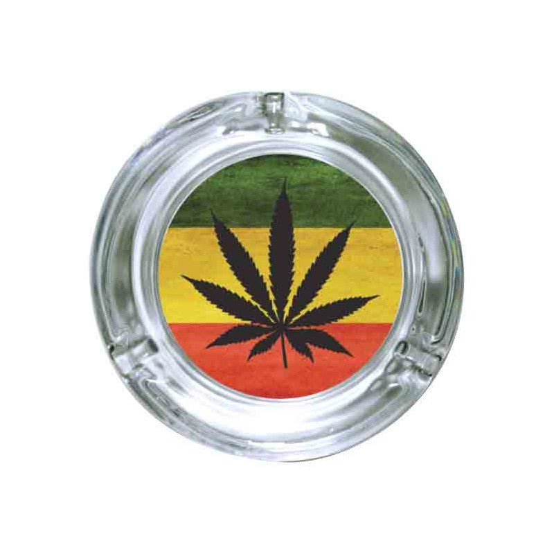 Stonerware 4.25" Round Glass Ashtray - Rasta Flag w/ Leaf