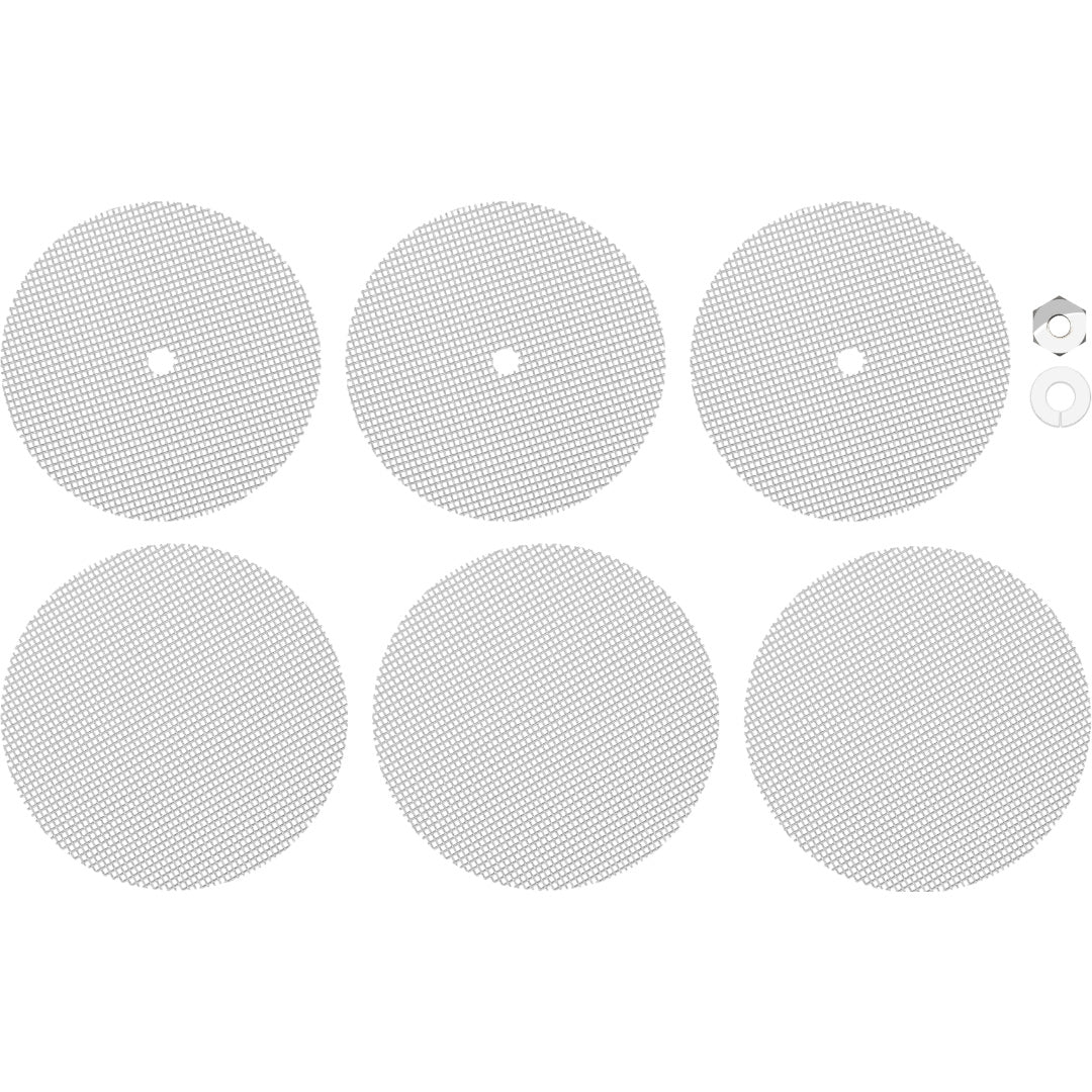 Set of 3 upper and 3 lower stainless steel Normal Screens to be used at the bottom of the SOLID VALVE Filling Chamber and for the SOLID VALVE Filling Chamber Insert, also including an additional nut and washer.