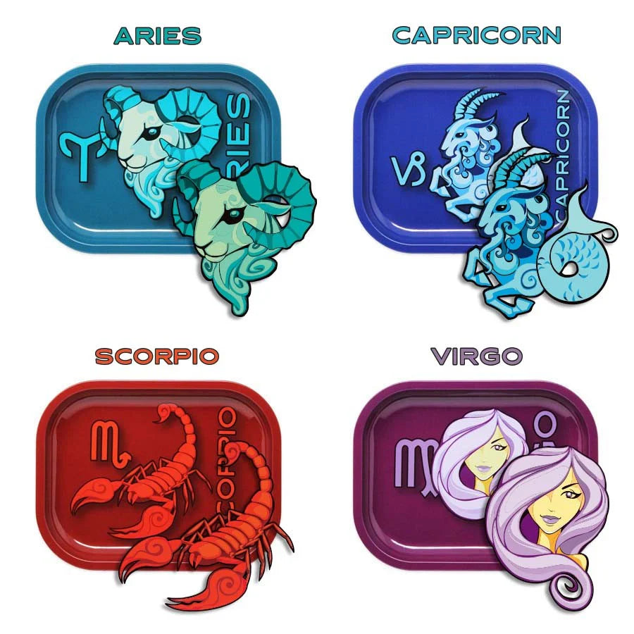 Glastrology rolling trays! Showcase your sign and love for astrology with Glastrology''s beautiful rendition of the classic 5" x 7" rolling tray. Made from durable aluminum with a raised outer lip to catch any of those important materials.
